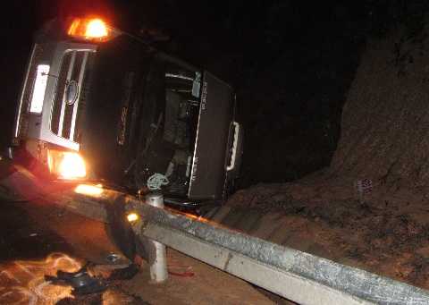 | Ô tô lao qua rào chắn, lật nhào trên đường |