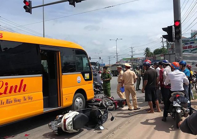 Ngày 7/6, Công an thị xã Bến Cát (tỉnh Bình Dương) cho biết đang điều tra nguyên nhân vụ việc một ô tô khách tông hàng loạt xe máy đang chờ đèn đỏ trên địa bàn.