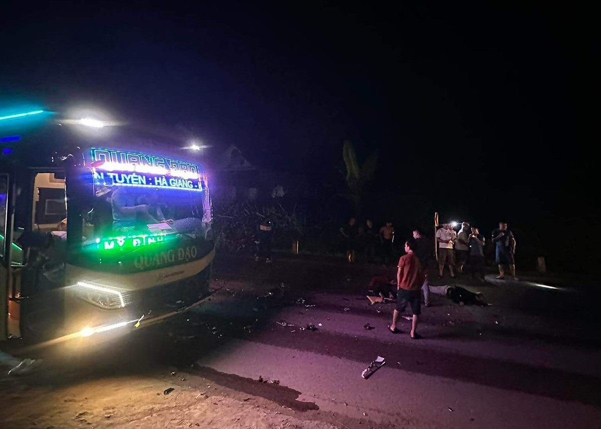 Trước đó, khoảng 23h20 ngày 12/4, Trần Văn T. (SN 1970, trú tại xã Hà Thạch, thị xã Phú Thọ, tỉnh Phú Thọ) điều khiển ô tô khách biển số 23E-000.95 đi theo hướng Hà Giang - Tuyên Quang. Khi đi đến Km186+550 QL2, thuộc thôn 1 Minh Phú, xã Yên Phú, huyện Hàm Yên, ô tô khách tông vào xe máy biển sổ 22Y1-323.02 đi chiều ngược lại.