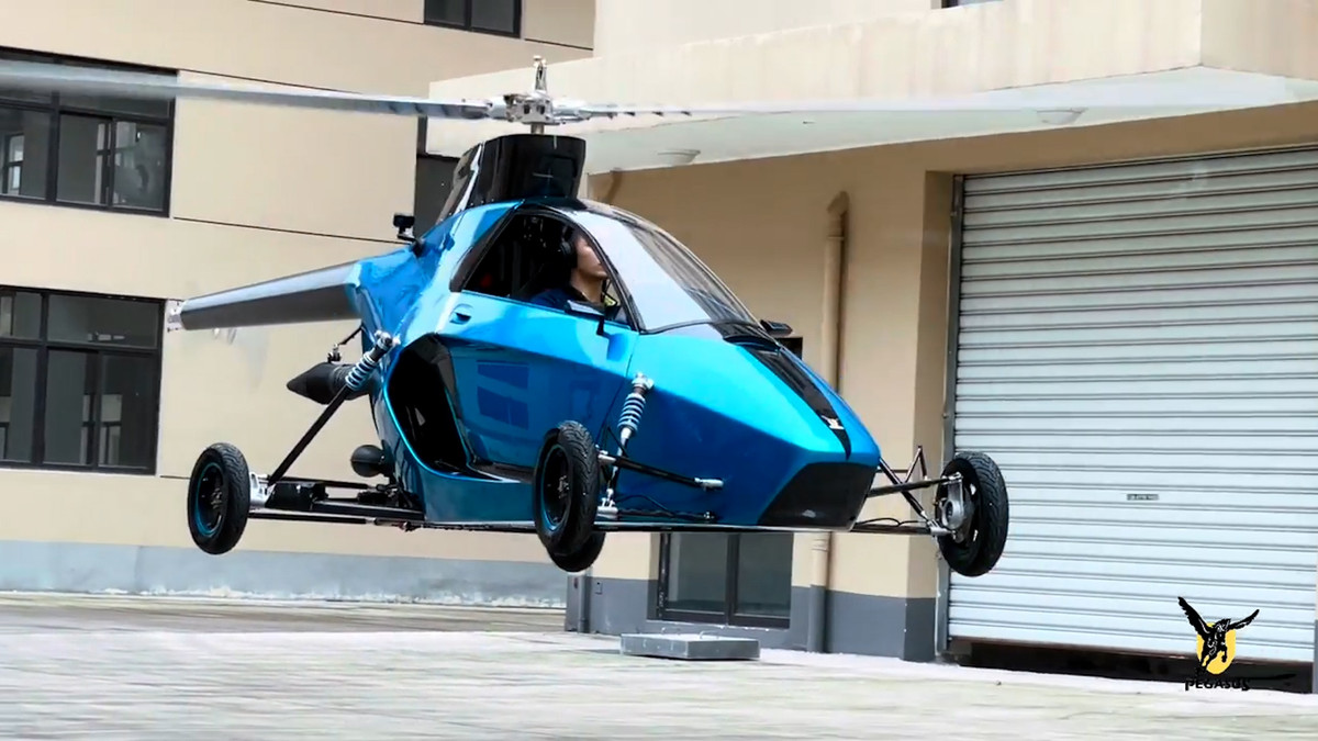 Ô tô bay Pegasus E tại Las Vegas, Mỹ được trang bị cánh quạt lớn và 4 bánh xe nhỏ, khi bay đạt tốc độ 160 km/h và 120 km/h khi chạy dưới lòng đường.
