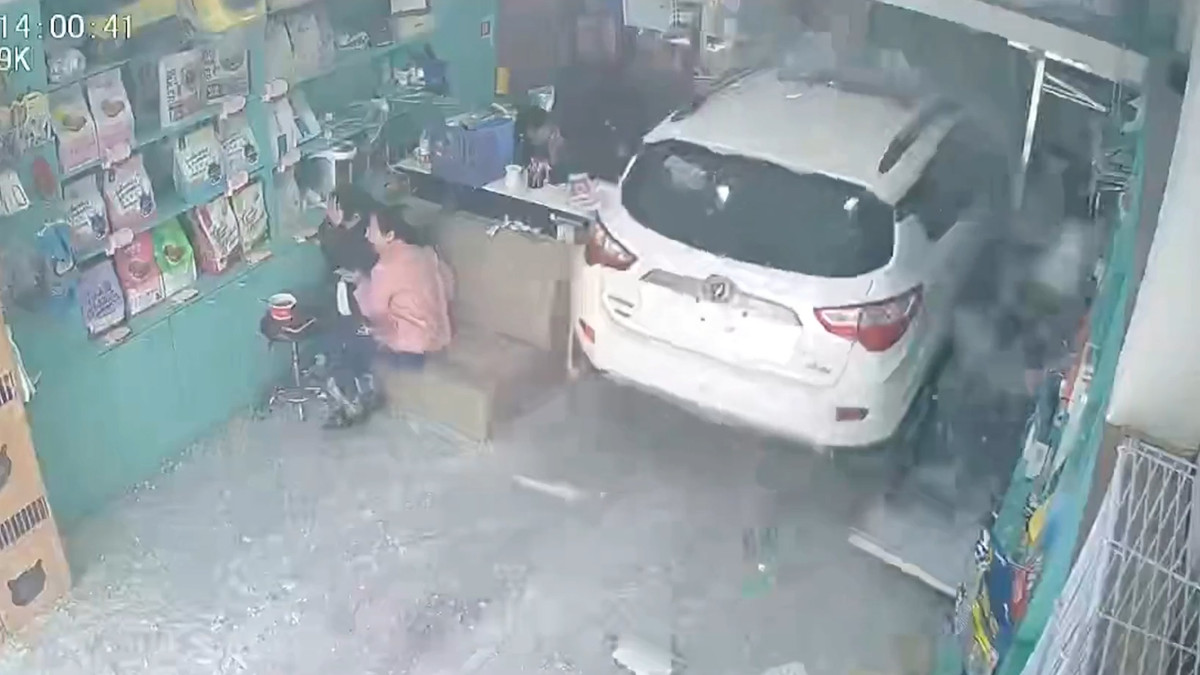 Nữ tài xế mất kiểm soát khiến ô tô lao như tên bắn vào cửa hàng thú cưng tại Côn Sơn,Trung Quốc.
