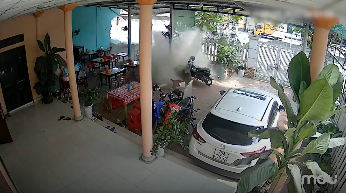 Hình ảnh được ghi lại tại xã Lộc Tiến, Phú Lộc (Thừa Thiên - Huế), khi ô tô đang lưu thông thì bị mất lái, lao thẳng vào quán ăn ven đường.