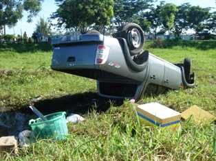 Ghi nhận tại hiện trường, xe nằm lật úp, 4 bánh chổng lên trời, nắp thùng xe văng ra xa 5m, xung quanh rơi vãi một số vật dụng sinh hoạt cùng một số giấy tờ...