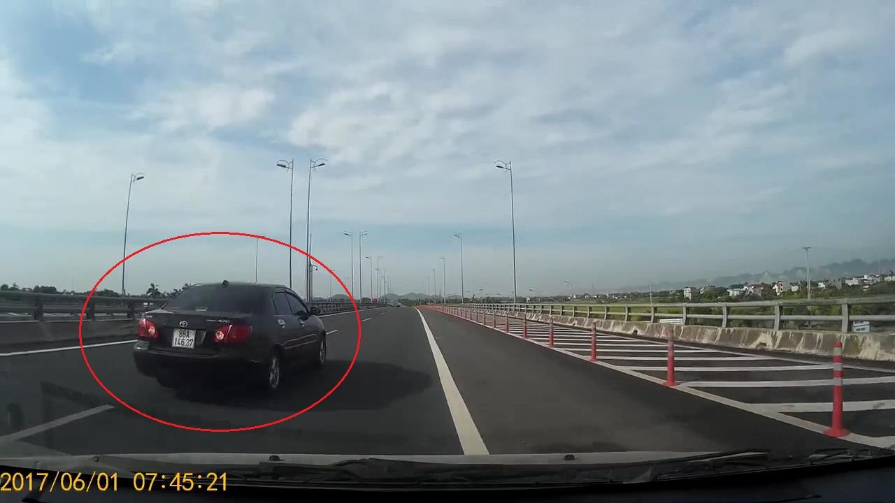 Ô tô con mang biển kiểm soát 88A - 146.37 bất chấp nguy hiểm, ngang nhiên đi giật lùi trên cao tốc Hà Nội - Ninh Bình khiến hàng loạt phương tiện phía sau giật mình bóp còi.