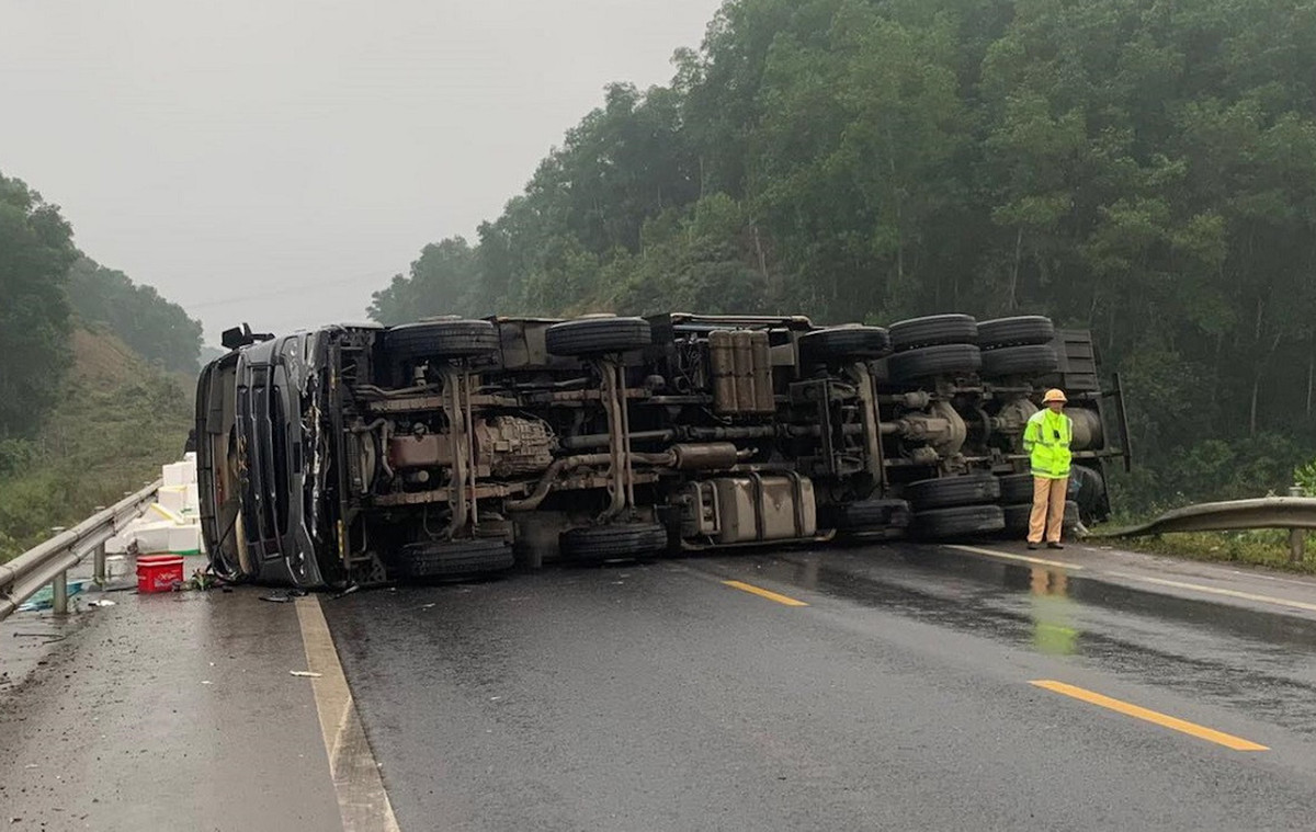Khi đến Km04 cao tốc Cam Lộ - La Sơn đoạn qua huyện Cam Lộ (tỉnh Quảng Trị) thì chiếc xe này gặp tai nạn rồi lật chắn ngang đường, thùng xốp đựng trái cây rơi vãi khắp nơi. Hàng chục phương tiện đang chạy trên tuyến buộc phải dừng chờ khắc phục vụ tai nạn, cao tốc Cam Lộ - La Sơn ùn tắc nhiều km.