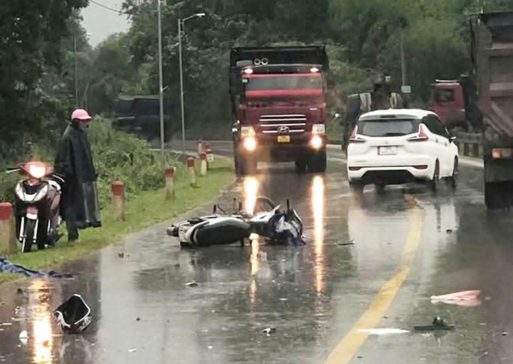 Cú tông mạnh khiến xe máy cùng 2 người trên xe văng xuống đường. Các nạn nhân được người dân nhanh chóng đưa đi cấp cứu nhưng một người tử nạn, người còn lại bị thương nặng.