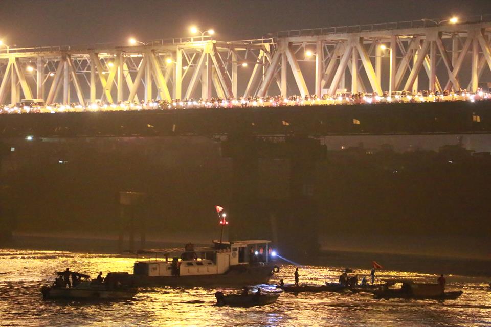 21h45, lực lượng chức năng yêu cầu người dân ra khỏi khu vực cầu Chương Dương, tạo điều kiện để lực lượng tìm kiếm làm nhiệm vụ.
