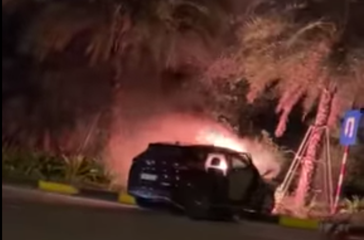 Ô tô bốc cháy trơ khung.