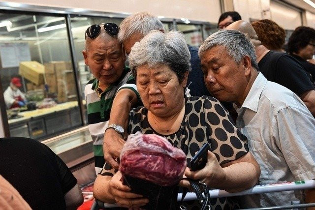 "Quá đắt. Tôi không thể mua nổi", bà Gui Fuyi, 69 tuổi nói khi chọn thịt tại một siêu thị ở Bắc Kinh. Gui cho biết vài ngày gần đây bà chỉ dám mua thịt lợn xay giá rẻ để gói bánh bao chứ không đủ tiền mua cả miếng thịt.