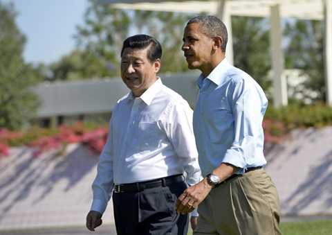 | Ông Obama và Tập Cận Bình cùng đi dạo trong khu nghỉ dưỡng Sunnylands, California |