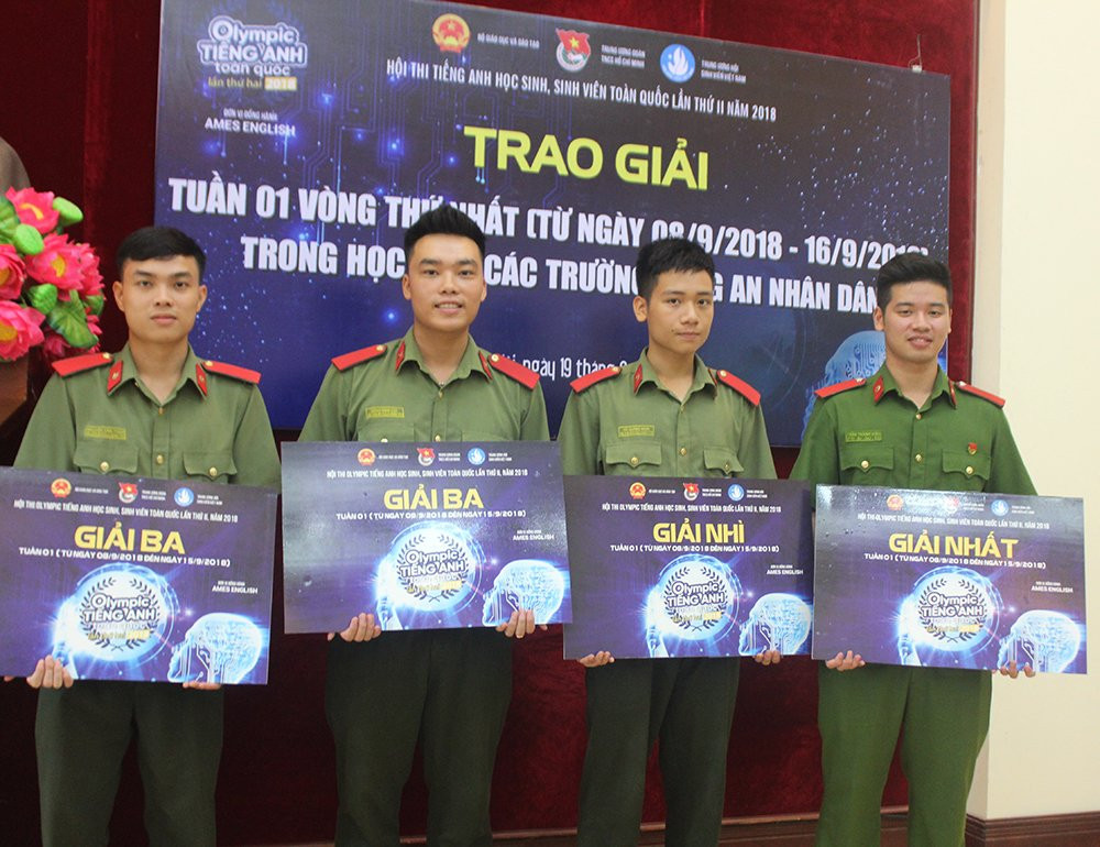 Chiều 19/9, tại Học viện An ninh nhân dân (ANND), TƯ Đoàn tổ chức lễ trao giải tuần 1 hội thi Olympic tiếng Anh học sinh, sinh viên toàn quốc lần thứ II năm 2018 khối các trường Công an nhân dân.