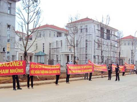 Điển hình, hàng chục người nhận là khách hàng mua nhà tại Khu Đô thị Bắc An Khánh - Splendora đã kéo tới trụ sở Tổng công ty Vinaconex (nằm trên đường Láng Hạ - Hà Nội), chăng biểu ngữ và đòi gặp lãnh đạo đơn vị này.