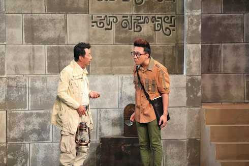 Trong căn phòng như kim tự tháp Ai Cập, giáo sư khảo cổ bắt đầu bị Trấn Thành hỏi đủ thứ trên đời vô cùng hóc búa. Giám khảo Hoài Linh rất thích cách xử lý tình huống của Khánh Nam: