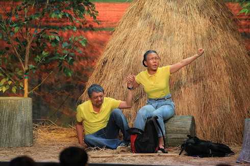 Còn lần này, Chiến Thắng bị hóa trang đầu tóc bạc phơ, răng rụng, chống gậy và có ‘mỗi tình già’ với Việt Hương.