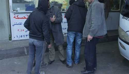 | Hành khách đi Raqqa hút thuốc tại phòng vé bến xe Charles Helou ở Beirut |