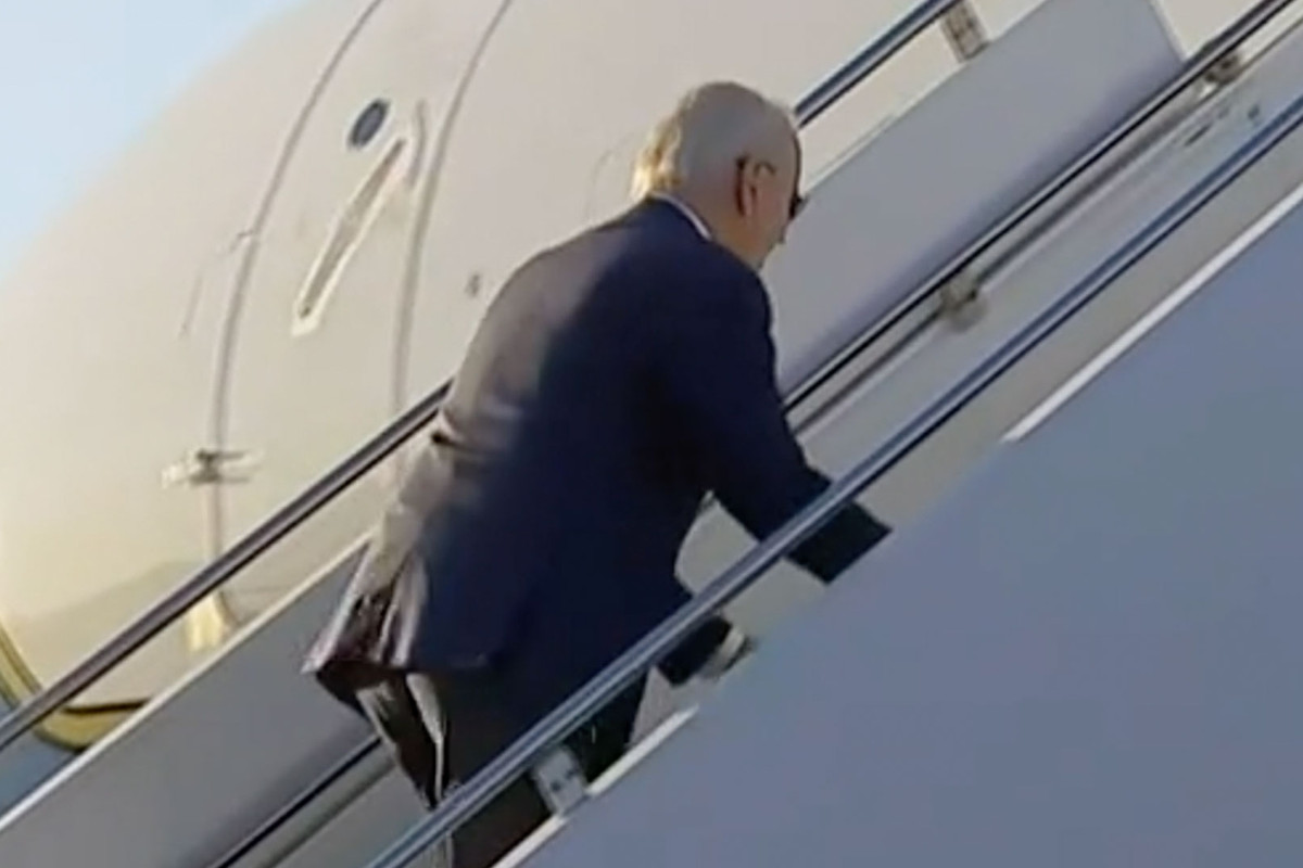 Ông Biden lại vấp khi lên máy bay Không lực Một. (Nguồn: New York Post)
