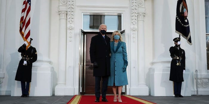 Ông Joe Biden và phu nhân lần đầu bước vào Nhà Trắng với tư cách Tổng thống Mỹ. (Ảnh: Getty)