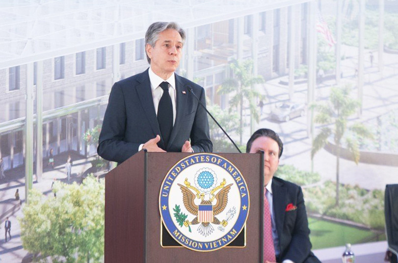 Phát biểu tại lễ động thổ, ông Blinken cho rằng, sự kiện là một trong những kết quả đỉnh cao có được nhờ sự gắn kết tận tâm và sáng tạo giữa rất nhiều nhà ngoại giao Mỹ và Việt Nam, thể hiện bước tiến to lớn trong việc tăng cường mối quan hệ đối tác quan trọng giữa hai quốc gia và nhân dân hai nước. Từ năm 1995, khi Ngoại trưởng Warren Christopher đến Hà Nội để bình thường hóa quan hệ ngoại giao, đại sứ quán có chưa đến 30 nhân viên Mỹ, đến nay đã có hơn 600 nhân viên Mỹ và địa phương.