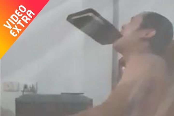 Thay vì reo hò ăn mừng chiến thắng đội nhà Việt Nam trước Syria, ông bố cố gắng kìm nén sự phấn kích tột độ của mình.