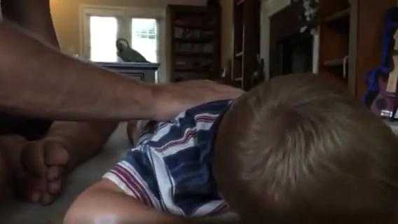 (VTC News) - Ông bố dùng tay đập lên lưng cậu bé tạo ra những tiếng trống vui nhộn.