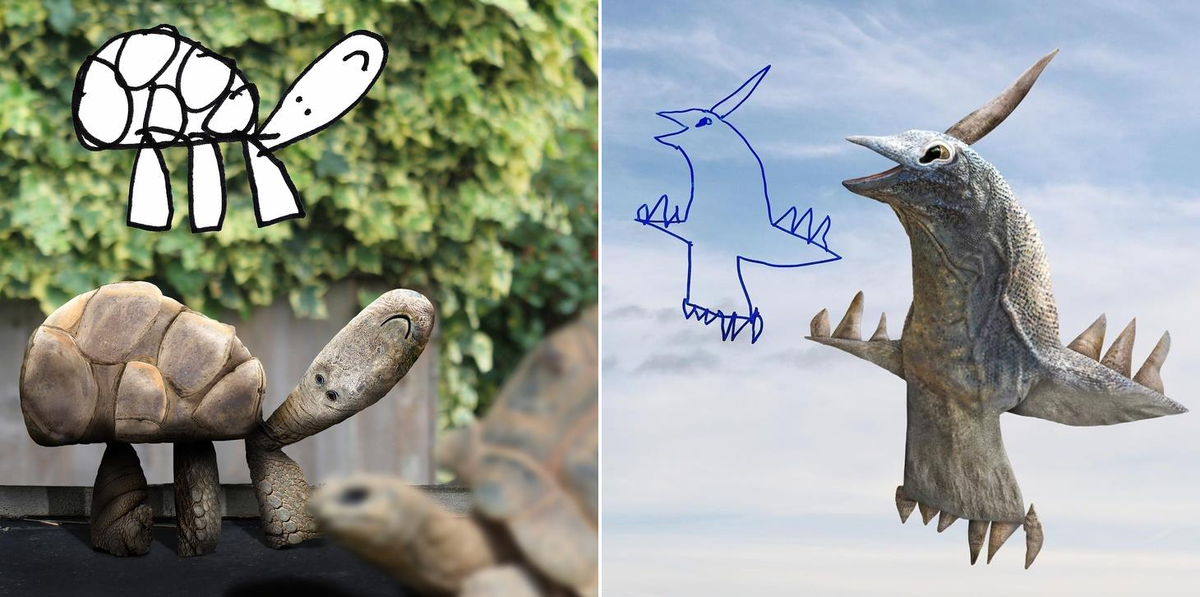 Tom Curtis (người Anh) bắt đầu dự án "Thing I have drawn" (tạm dịch "Những thứ tôi vẽ") từ năm 2016 sau khi tìm ra điểm độc đáo từ những bức tranh vẽ vu vơ của hai cậu con trai. Bằng kỹ thuật photoshop, anh "hiện thực hóa" những thứ con vẽ, tạo cảm giác thế giới thật biến đổi theo cách nhìn của trẻ nhỏ.