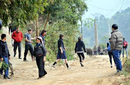 | Bạn gái Mark (đi đầu) cũng thích thú phong cảnh và tập tục của đồng bào Sa Pa. Ảnh: Hoàng Tùng |