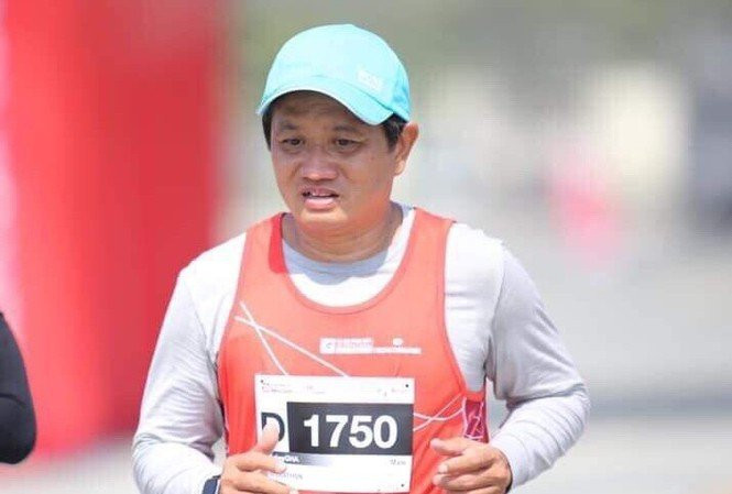Ông Đoàn Ngọc Hải trên đường chạy 42 km để ủng hộ người nghèo.