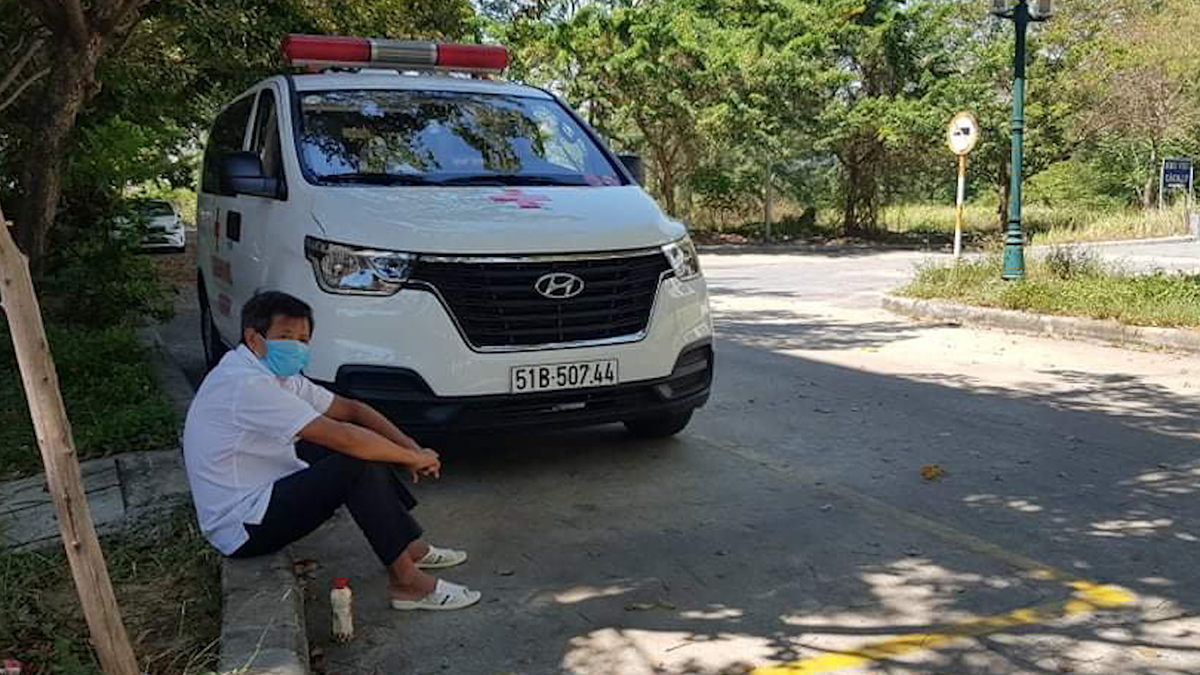 Sáng 12/9, ông Đoàn Ngọc Hải, cựu Phó chủ tịch quận 1, TP.HCM chạy xe cứu thương đến Bệnh viện Ung Bướu Đà Nẵng ngồi chờ để chở bệnh nhân nghèo về quê miễn phí.