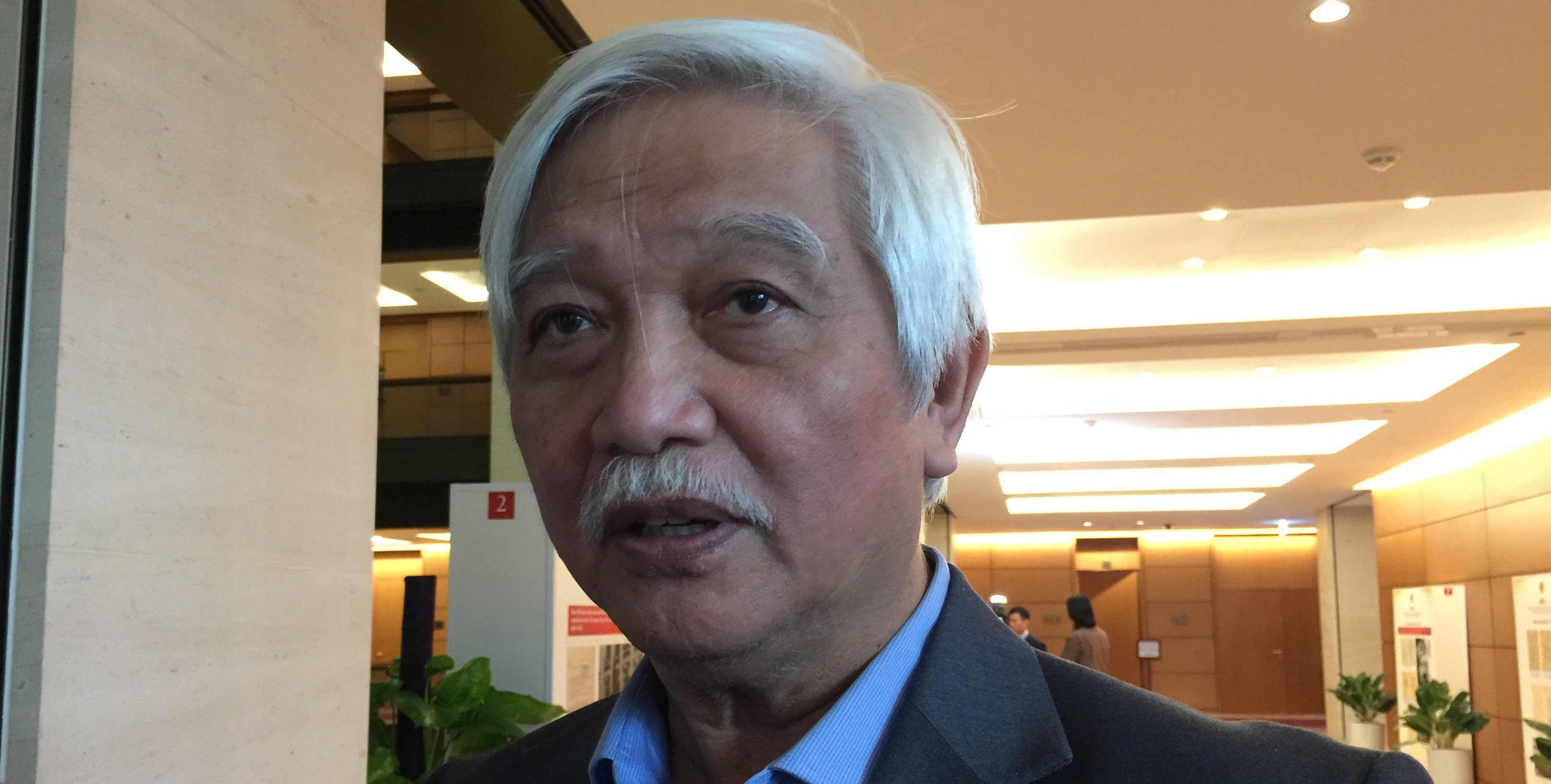 Đại biểu Dương Trung Quốc trao đổi bên hành lang Quốc hội.