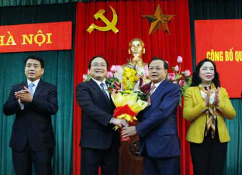| Ông Phạm Quang Nghị chúc mừng tân Bí thư Hà Nội. |