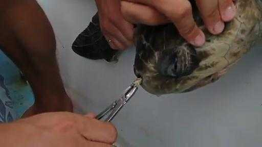 Ống hút dài 10cm mắc kẹt trong mũi rùa biển