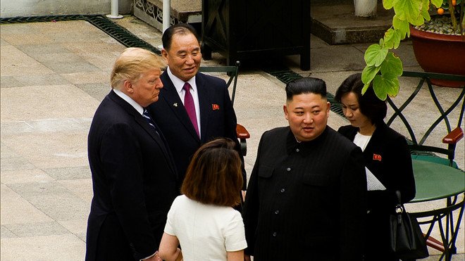 2 nhà lãnh đạo Mỹ-Triều sau đó tản bộ quanh khuôn viên khách sạn Metropole trong vài phút trước khi trở vào và bắt đầu phiên họp song phương mở rộng cùng các trợ lý. Dự kiến, phiên họp sẽ kết thúc vào 11h55.