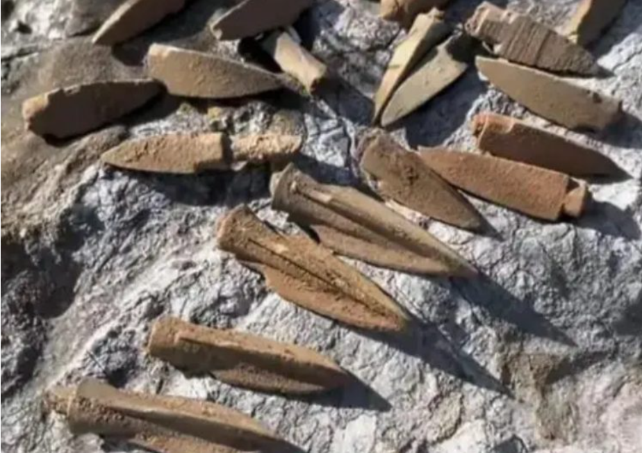 Khi ông bới chúng ra, phát hiện tất cả đều đã gỉ sét và có vẻ như được chôn dưới đất từ khá lâu. Những thứ lạ hình tam giác này không phải những con dao mà là những đầu mũi tên. Thấy vậy, ông Trương vội gói tất cả đem về nhà.