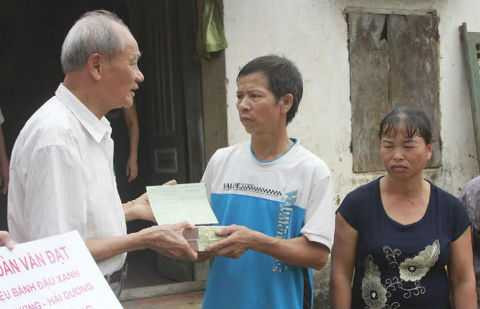 Sáng nay (9/9), ông Đoàn Văn Đạt, 79 tuổi, chủ hiệu bánh đậu xanh Nguyễn Hương (Hải Dương) đã tới thăm gia đình ông Nguyễn Thanh Chấn tại thôn Me, xã Nghĩa Chung, Việt Yên, Bắc Giang.