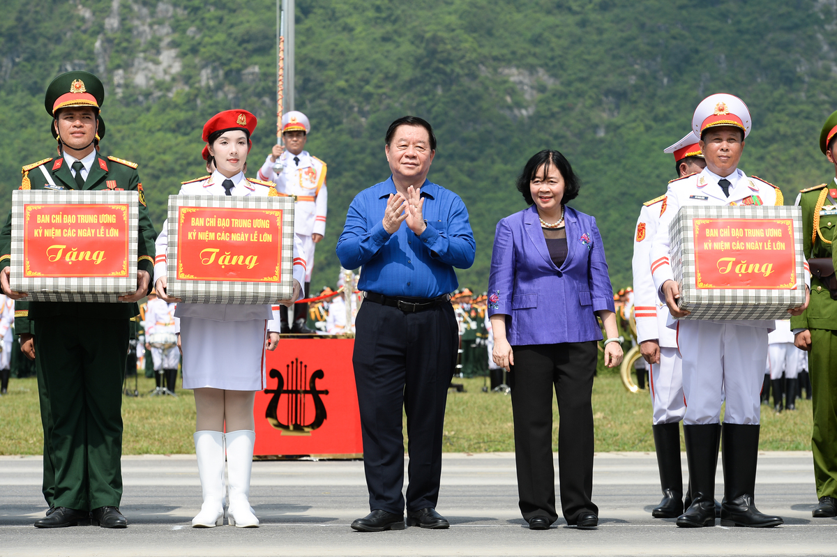 Nhân dịp này, Trưởng ban Tuyên giáo và Dân vận Trung ương Nguyễn Trọng Nghĩa cùng đại diện các bộ, ngành, cơ quan Trung ương đã tặng quà cho các lực lượng tham gia diễu binh, diễu hành.
