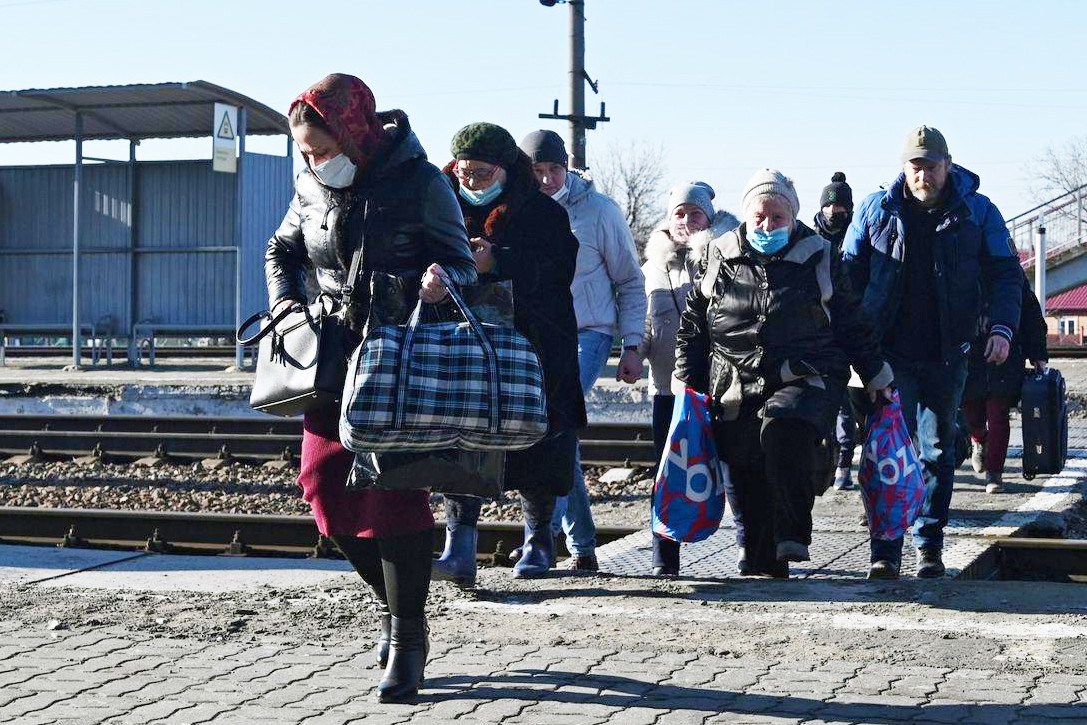 Những người di tản từ Cộng hòa Nhân dân Donetsk tự xưng (DNR) đến ga đường sắt Uspenkaya ở vùng Rostov, Nga, vào ngày 19/2. (Ảnh: Reuters).