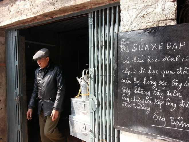 Ông Tâm Tận tình sửa xe, mỗi khi sửa xong, ông đều dặn các cháu phải ngoan, chăm học, nghe lời bố mẹ, thầy cô...