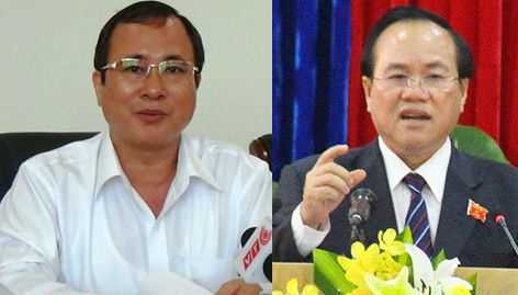 | Tân Chủ tịch UBND tỉnh Bình Dương Trần Văn Nam (trái) thay ông Lê Thanh Cung đến tuổi về hưu. Ảnh: Phan Cường |