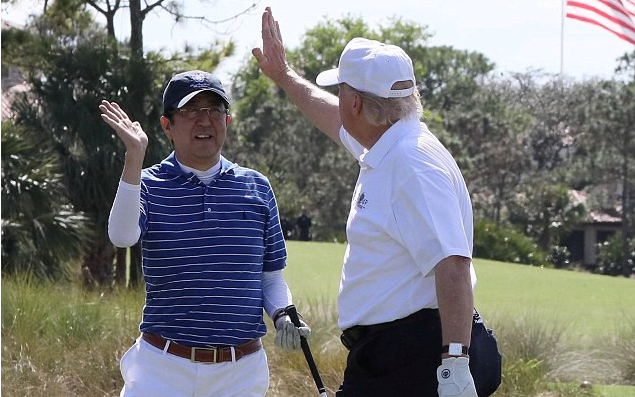 Ông Trump và ông Abe đều là những người yêu thích chơi golf. Họ đã cùng đánh golf với nhau ở Florida hồi tháng 2, khi thủ tướng Nhật Bản có chuyến thăm chính thức Mỹ ngay sau khi ông Trump nhậm chức tổng thống.