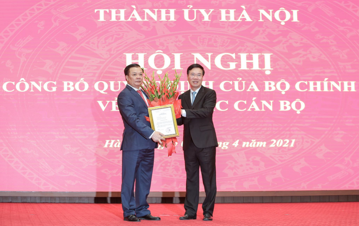 Thay mặt Bộ Chính trị, Thường trực Ban Bí thư Võ Văn Thưởng trao quyết định của Bộ Chính trị phân công, chỉ định ông Đinh Tiến Dũng - Ủy viên Bộ Chính trị, Bí thư Ban cán sự đảng, Bộ trưởng Bộ Tài chính tham gia Ban Chấp hành, Ban Thường vụ và giữ chức Bí thư Thành ủy Hà Nội nhiệm kỳ 2020 - 2025.