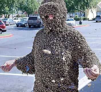 Chạy đến nơi, ông Thành chứng kiến cảnh tượng kinh hãi, hàng trăm con ong đang bu kín người ông Hảo để đốt.