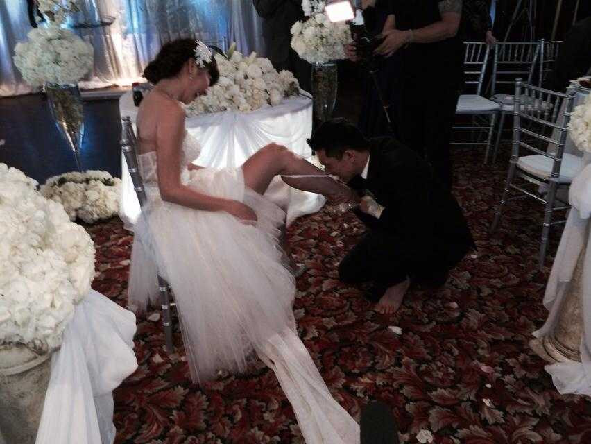 Trong lễ cưới được tổ chức ở Mỹ, Ngọc Quyên hạnh phúc rạng ngời khi ông xã hôn vào chân.
