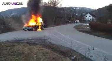 (VTC News) - Chiếc ô tô đang được dập lửa thì đột nhiên trôi dốc đâm vào lan can phòng hộ.