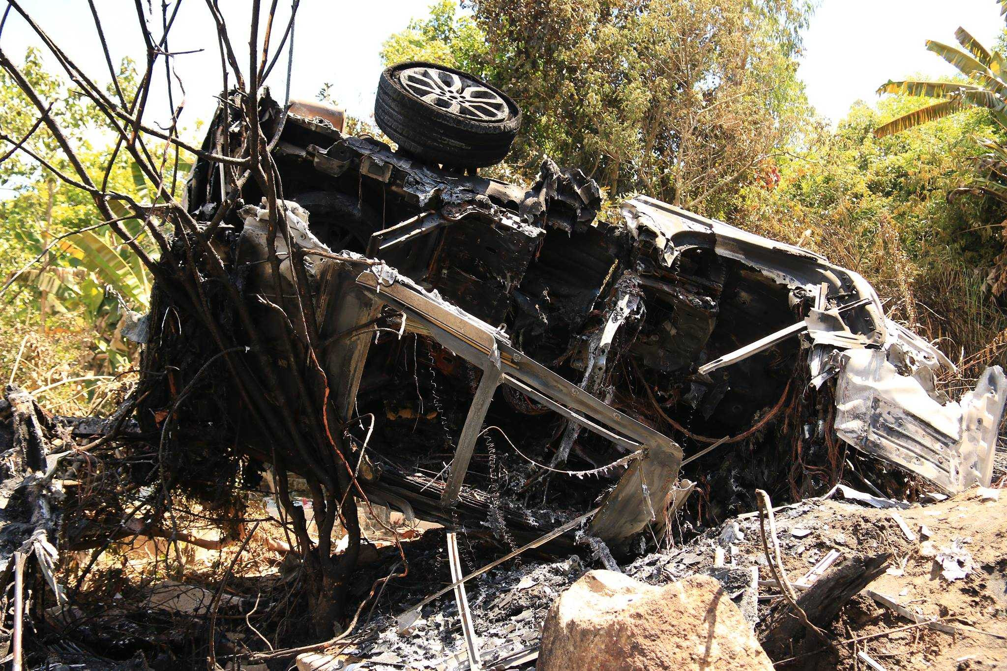 Khi đến khúc cua trước Miếu Đôi (đoạn giao nhau Hoàng Sa - Lê Văn Lưu) thì bất ngờ mất lái rồi lao thẳng lên vỉa hè, cán gãy 2 cây xanh, lật ngửa và bốc cháy dữ dội.