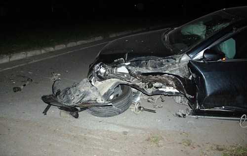 Xe văng ngược lại 5 m, quay ngang dưới đường. Trục trước gãy, phần đầu nát bươm, các mảnh vỡ văng tung tóe.