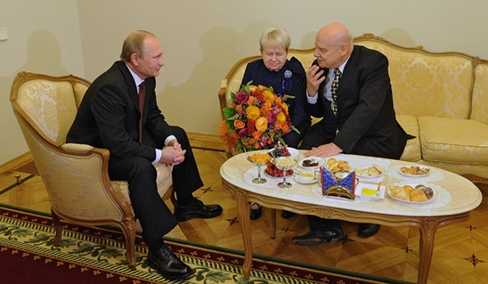 | Tổng thống Nga Putin ngồi bên Nghệ sỹ nhân dân Liên Xô Alexandra Pakhmutova |