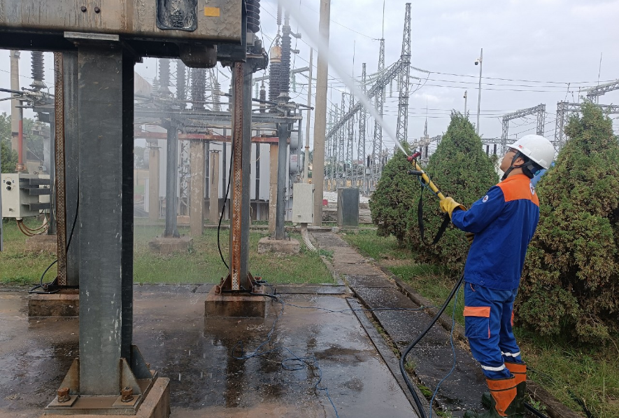 Vệ sinh sứ cách điện bằng nước áp lực cao.
