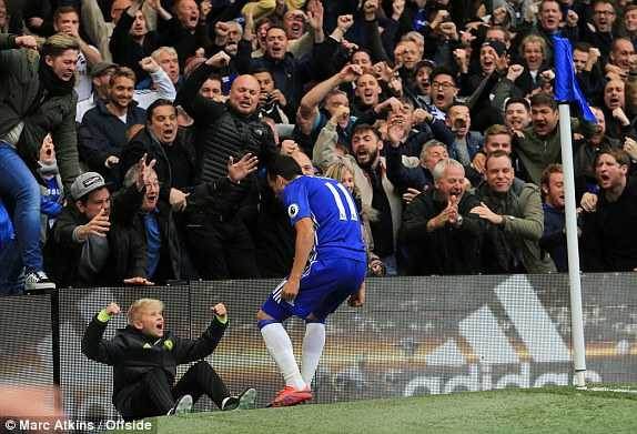 Pedro nhanh chân phá bẫy việt vị, lao xuống lừa qua De Gea, mở tỷ số cho Chelsea.