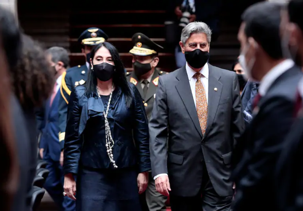 Bộ trưởng Ngoại giao Peru Elizabeth Astete và Tổng thống lâm thời Francisco Sagasti. (Ảnh: Reuters)
