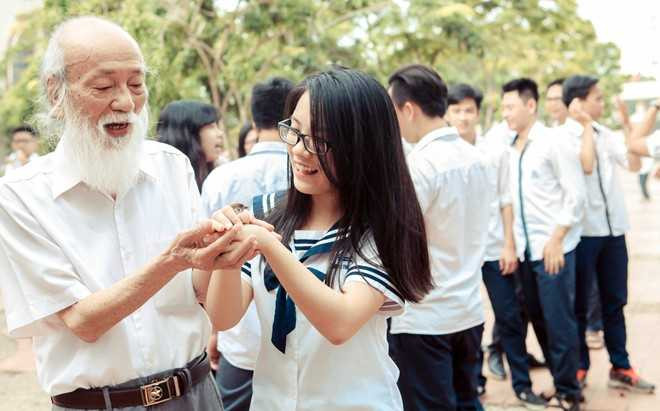 Ngày 21/5, học sinh lớp 12, THPT Lương Thế Vinh làm lễ thả chim phóng sinh. Cô giáo Văn Thùy Dương (con gái PGS Văn Như Cương) cho biết, đây là hoạt động thường niên tại trường. PGS Văn Như Cương - thầy giáo 80 tuổi nổi tiếng trên mạng xã hội - cùng học trò làm lễ phóng sinh.